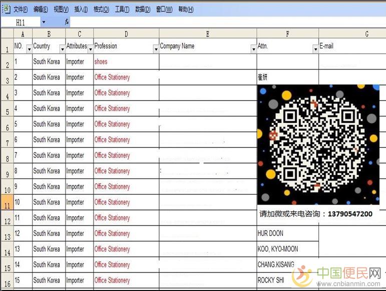 从2014年始,本人进入出口行业至今五年多,通过平时展会拜访,邮件开发,网络筛选至今收集数万家外国贸易公司的邮箱资料来自www.cnbianmin.com。涵盖欧美,大洋洲,东亚,东南亚,南亚等与我们国家有规模贸易以上(从我国年进口达到或者超过250亿美元的)的十多个国家中国便民网www.cnbianmin.com。与“一带一路”“海上丝绸之路”相符合c_n_b_i_a_n_m_i_n_c_o_m。行业主要是进口大项:家居用品,消费电子,仪器设备,纺织品,金属制品,户外产品等中国便民网。现将珍贵的自用资料公开向国内的出口企业和个人出售c.n.b.i.a.n.m.i.n.c.o.m。请自行结合自己的产品,做二次深入开发和关联开发欢迎www.cnbianmin.com。单价:6000元中+国+便+民+网。数据有价,市场无价,欢迎加微或来电咨询购买,谢谢欢迎www.cnbianmin.com。